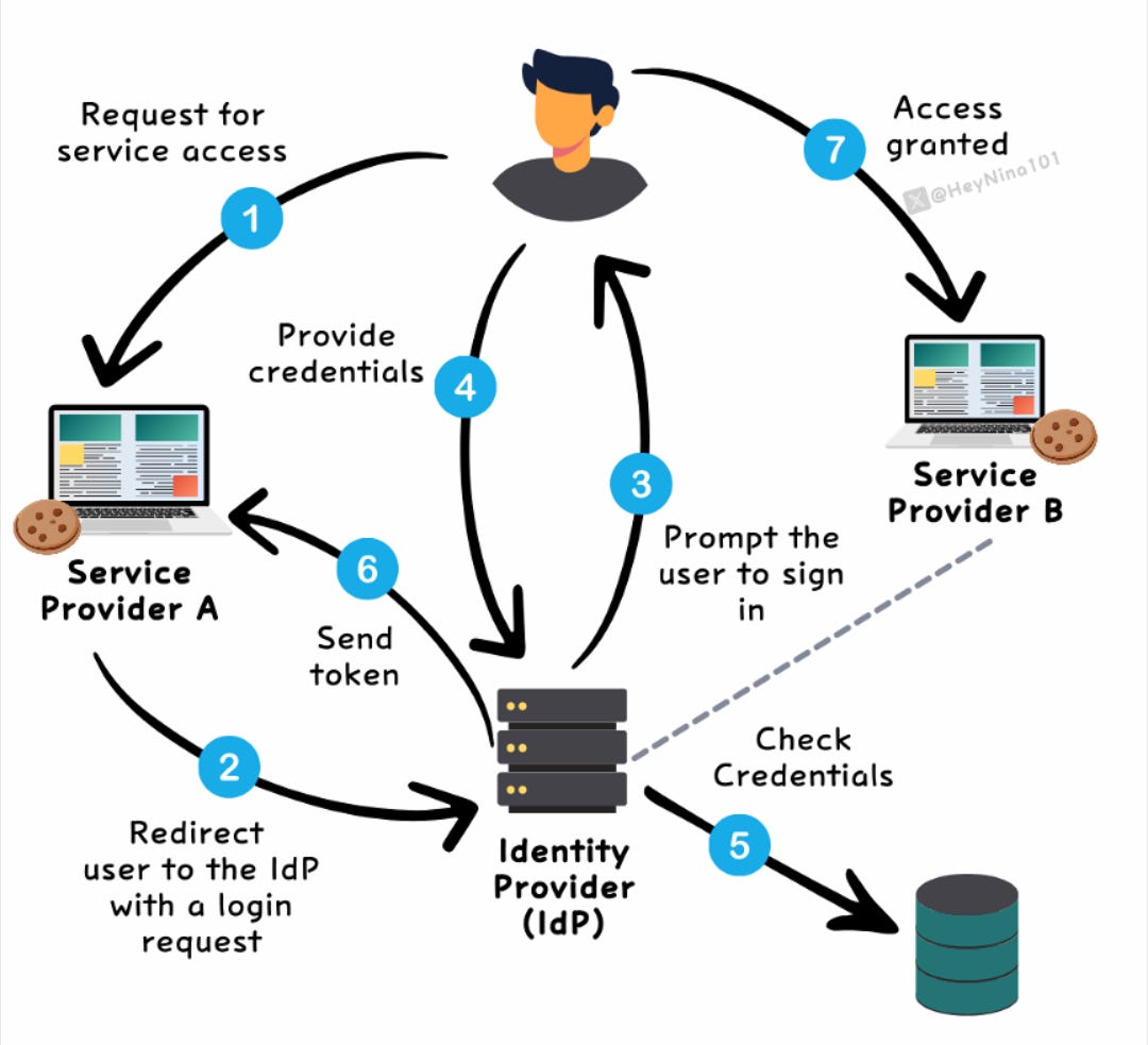 Single Sign-On lets users access multiple apps with one login. Here's the flow: